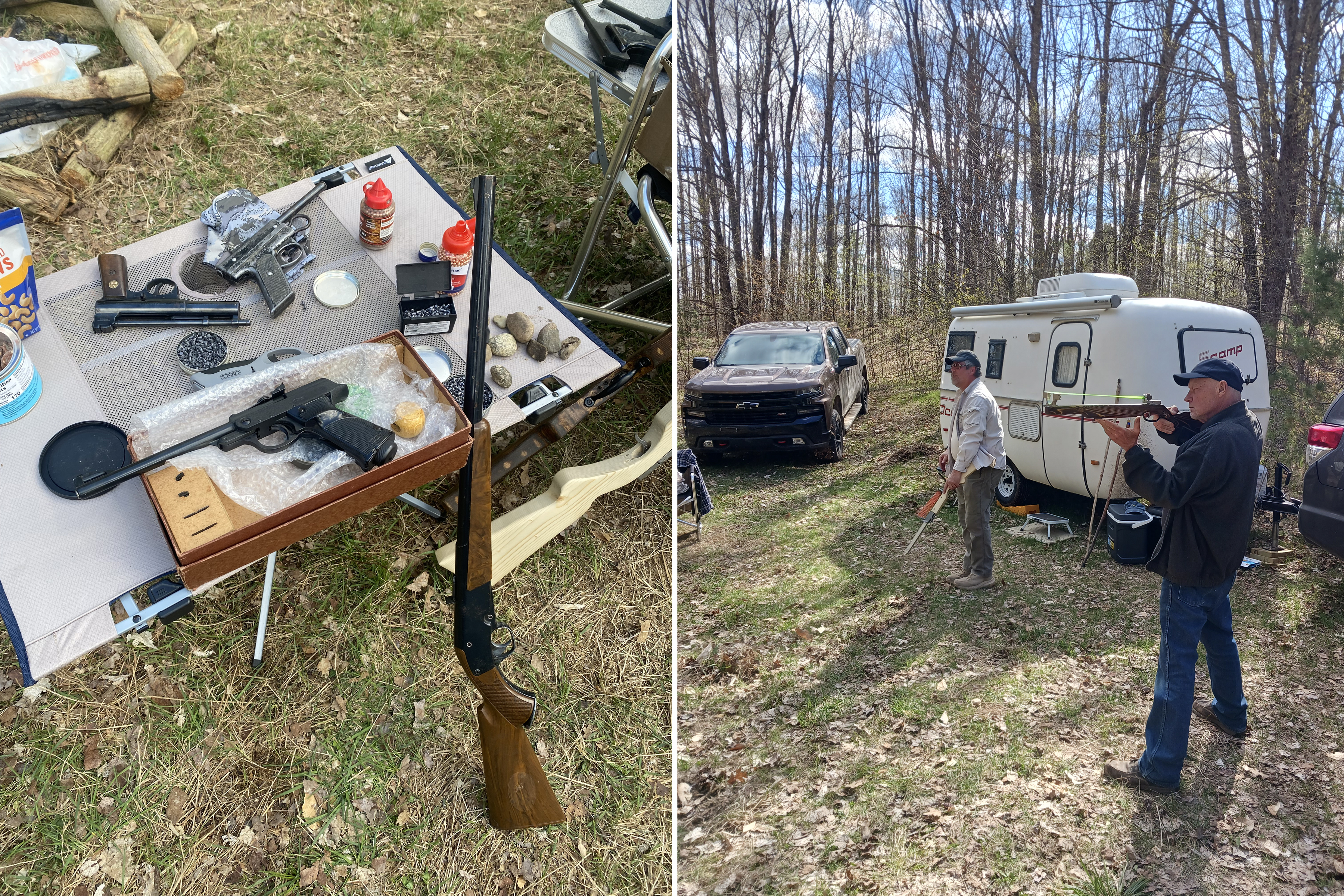 Natch brought some antique pellet pistols and rifles and we spent one afternoon plinking tin cans around camp. Natch is a serious collector of rare rifles from the early twentieth century. He also brought some hand-built sling-shot rifles using rubber slings meant for slingshots. Very creative guns. They looked dangerous, were difficult to load, but would launch small stones and round shot like a catapult. I give Natch a lot of credit. Making some sort of gun was a camp challenge and he always rises to the occasion.