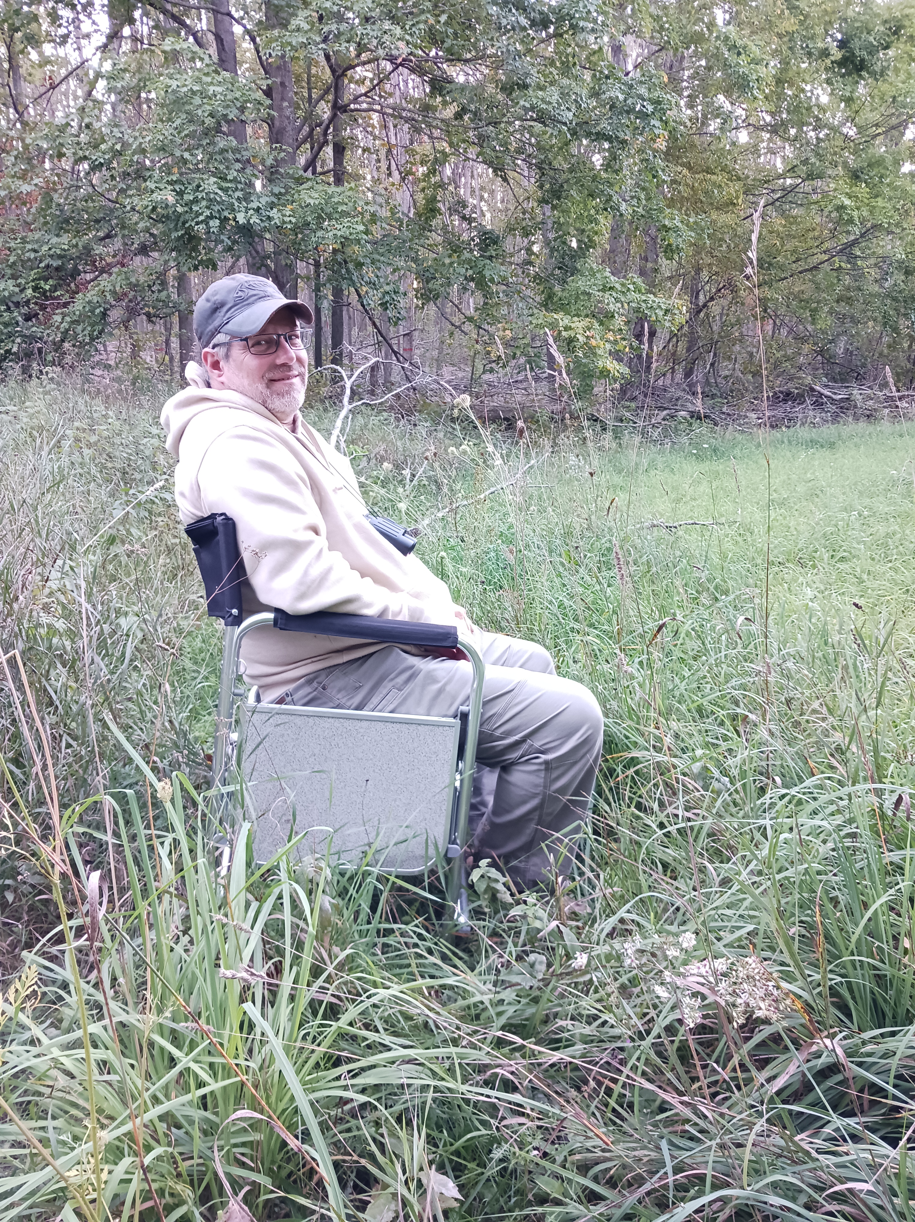 I mentioned to Natch I was bringing a tent since it was just a two-night trip. He brought a portable ice shanty, which he bought expressly for camping. It has 6-foot clearance for standing and a collapsible pole system for easy set-up. There’s room for a cot and a couple of chairs, so it really makes a nice tent. And it’s dark in there. Close it up and it’s pitch black – great for sleeping. I had my small Eureka backpack tent and two sleeping bags as a mattress off the ground. I slept okay, but I need to rethink this. Natch showed up around eight pm. It was drizzling and a bit chilly, but we sat outside and had some snacks and beer, and talked for quite a while. It was good.