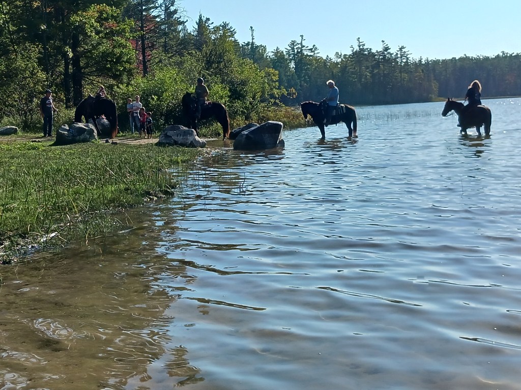 One afternoon, sitting on a bench at the boat landing/beach at Pickerel Lake, some horseback riders stopped to give their mounts a drink in the lake. A family with kids gathered to see the horses. That was fun to see too.