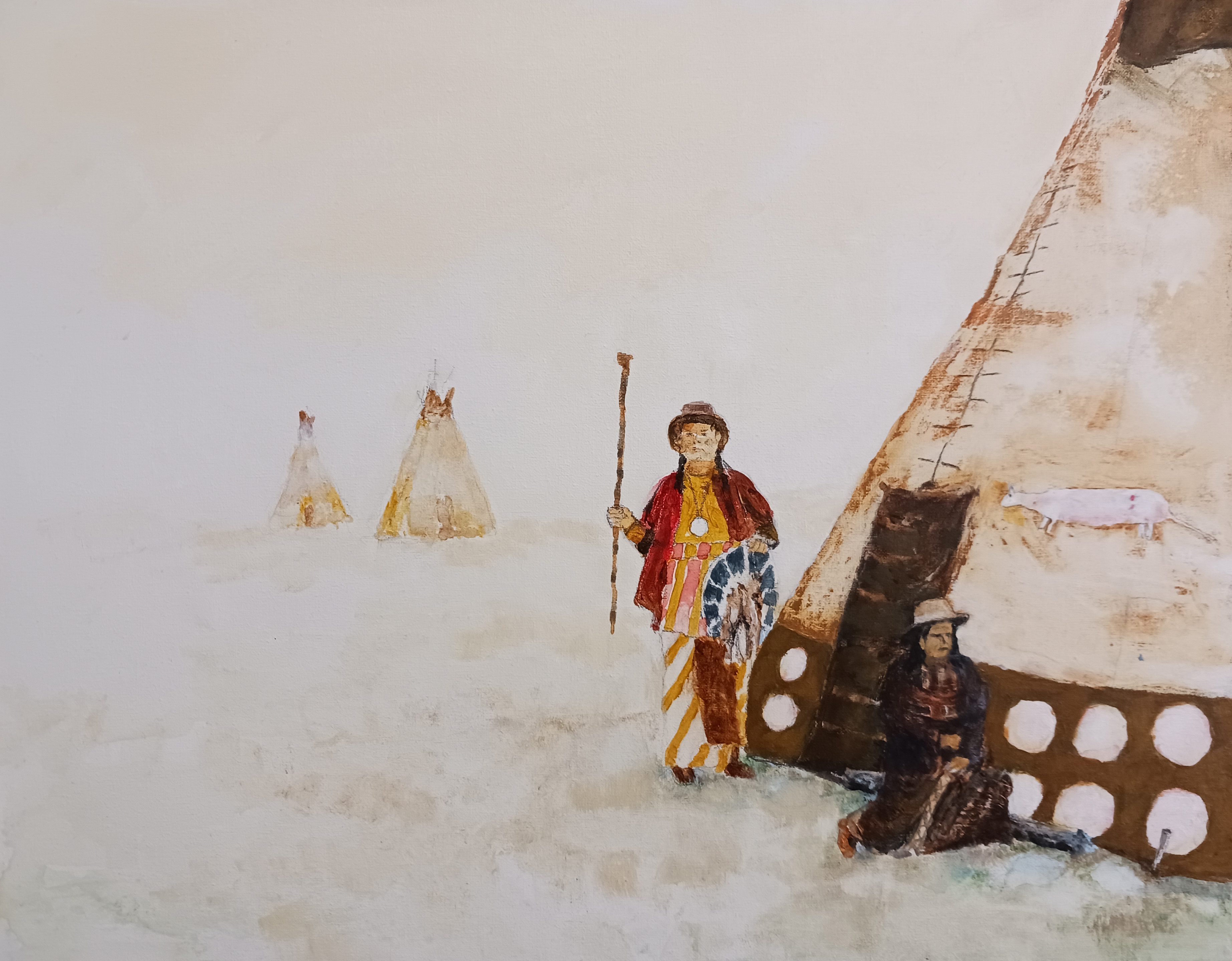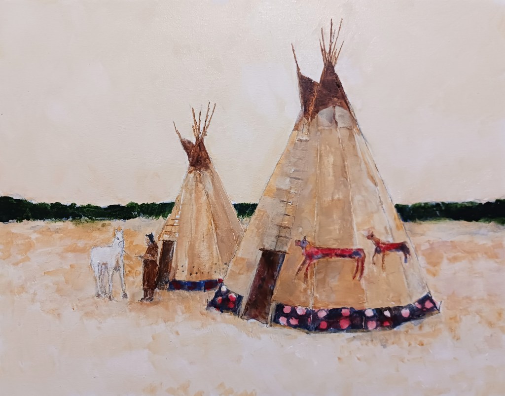 The middle section of a tipi has a spirit being that comes in a dream. From what I understand, the spirit being has taken pity on the owner and has shared its spirit for the well-being of the tribe. It is much more complicated than that; everything about the tipi design has symbolism based on respect for the natural world.
