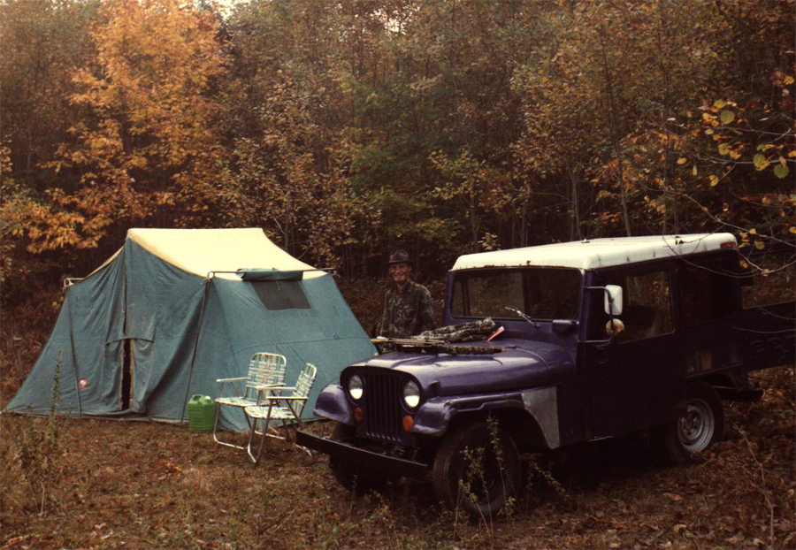 This year Jake showed up with a new Jeep which is a little surprising because Feral, his dad, has a history with Jeeps and many Jeep repair stories. Below is a photo of Feral back in the seventies ready for bow hunting, something we keep talking about because in Michigan the second that trout season ends – bow hunting begins. So that would be an excuse not to break camp and head home. I’m not interested in harvesting a deer, but the woods are spectacular in October.