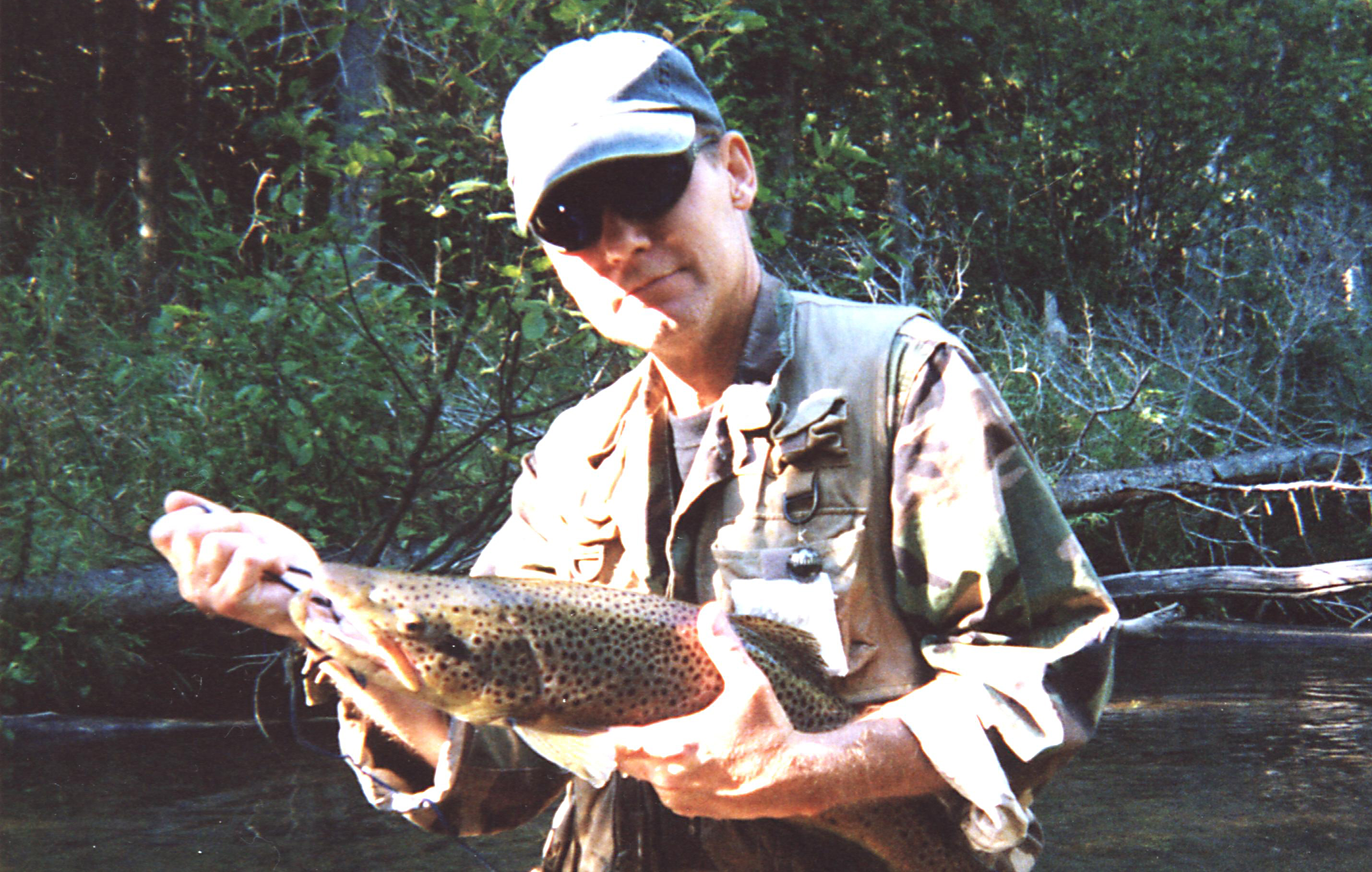 Feral loaned me some photos over Thanksgiving and a few took me right back to the stream. Several years back we were doing the trout closer up by Vanderbilt and we fished a stretch of the Pigeon that requires a lot of walking to reach. After the long trudge in we  decided hey, we made it this far, we may as well keep going a few more bends. Ultimately we knew it meant 3 hours of wading upstream to get to our takeout point, and another quarter mile walk through tangles back out to the truck. We went a bend to far, so to speak, and we found ourselves on a gravelly stretch that didn’t look to promising. Feral took the lead. There was a downed spruce angled back towards us, almost completely across the river. Feral moved up so he could run a lure in front of it. His first cast was slammed by the brown in the above photo. I believe it was twenty seven inches and that meant some soul searching.