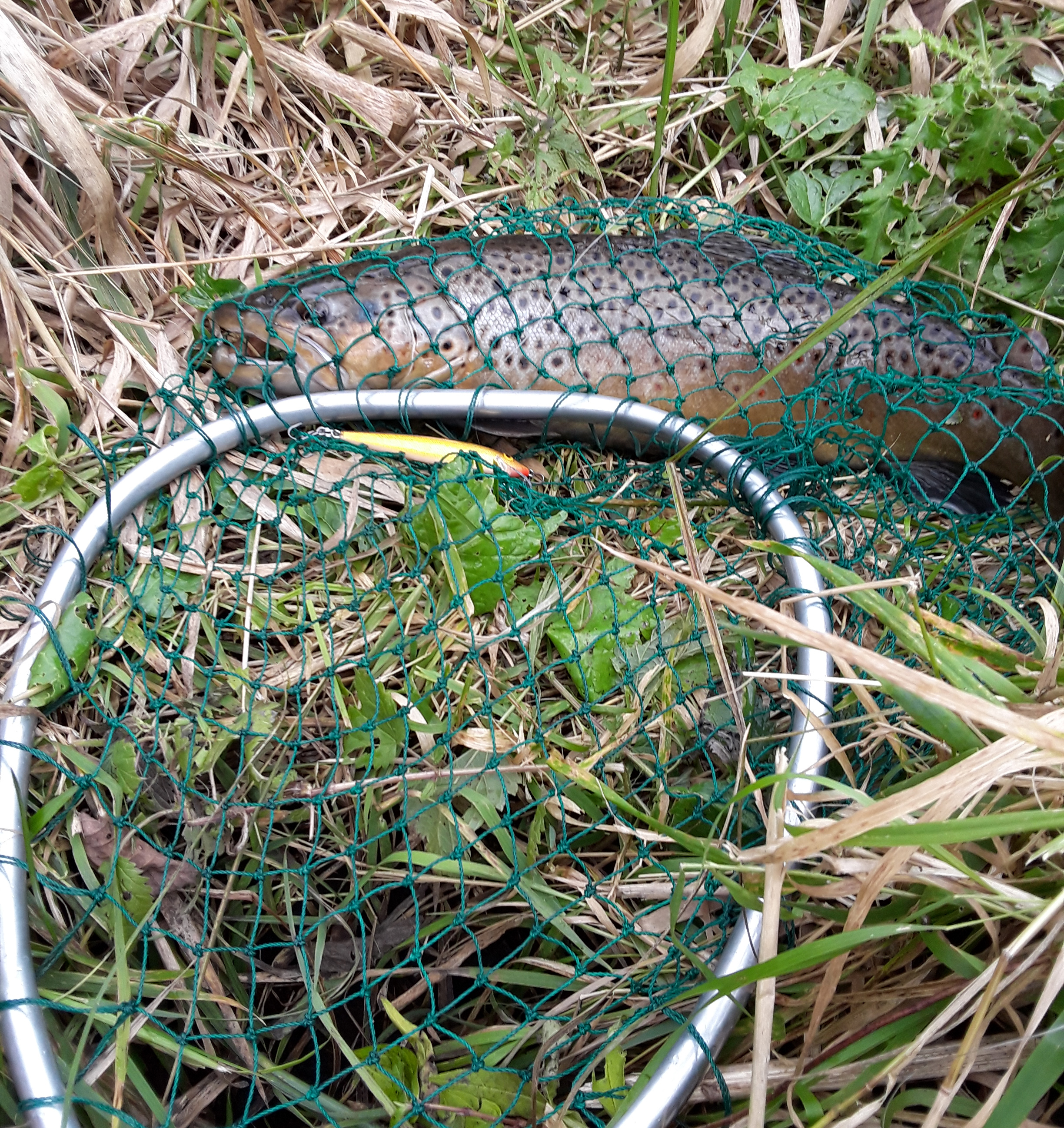 This one came out of a deep sandy section upstream of a large island. I lost another brown that was a bit larger – right at the net. It came out of a piece of cover that didn’t look like much. It jumped a couple times so I could see it was big. I should have been concentrating on keeping it from jumping by holding the end of the pole in the river. He threw the hook coming out of the water. So it was an eventful trip but must report the large migratory brown trout were not up there yet. You know when they get there because they are everywhere and usually hungry.