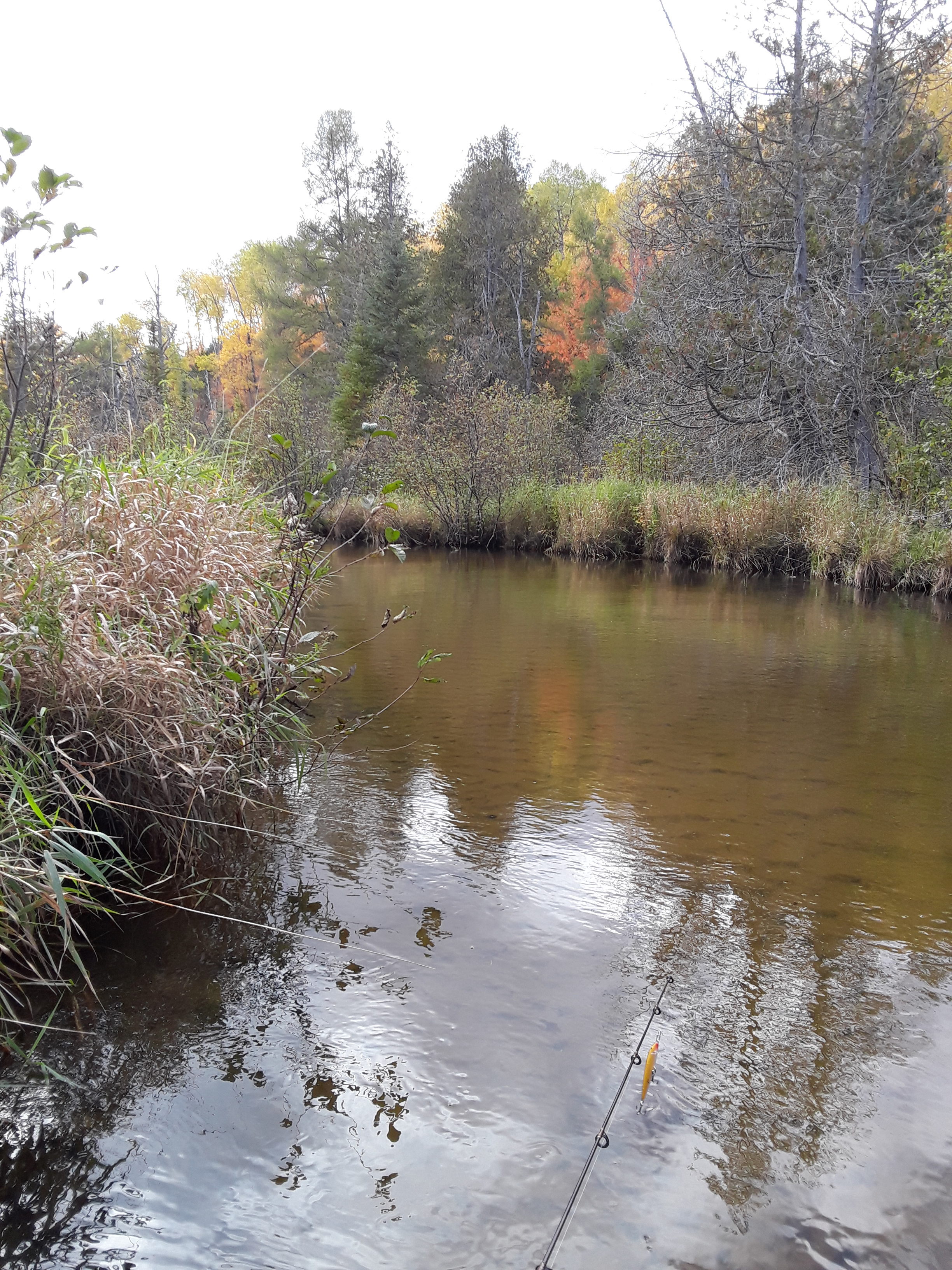 When I drove up to see Jake and Feral, last post, I had a second agenda which was swing over to the Pigeon River State Game Area and fish a section of the Pigeon that stays open all year. You can keep rainbow trout, but that’s it. I have caught rainbows on the stretch but mainly brown trout which move upstream in the late fall to spawn. It’s a chance to catch a monster, take a couple pictures, and put it back in the river which I normally do anyway, preferring to keep small pan fryers if I want a trout dinner.