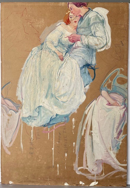 All of the gallery workers gathered around to check it out. They loved the oil painting but were equally amazed at study on the back. Later, I did a search of archived magazines because it looked familiar and found it was a study for the cover of the Ladies Home Journal magazine, April 1922.
