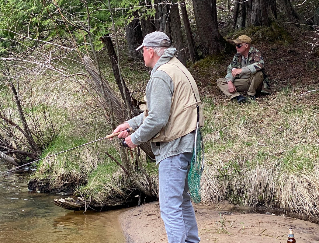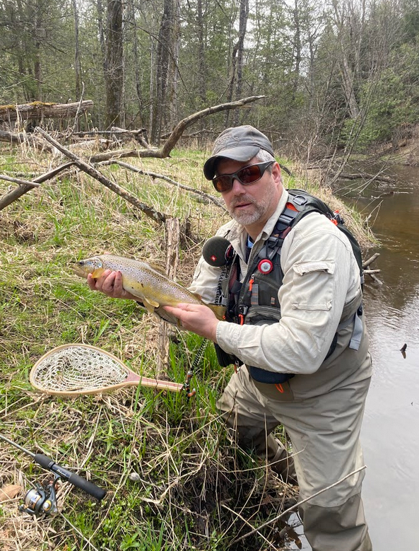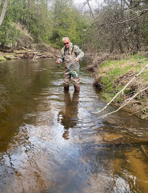 The stream conditions were the best we have seen in years – a dark coffee stain that kept the trout from seeing us as we waded up the river. Likely the best year we have had on the Pine as far as trout caught. We kept two only for a trout dinner and released the rest.