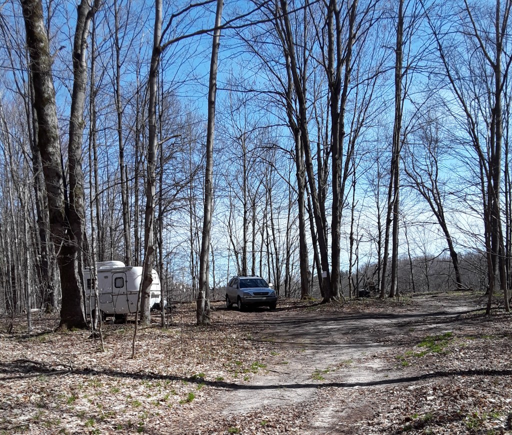 I arrived first hoping to find level ground for a new camper trailer, my first real trailer. A 2006 Scamp 16. Fiberglass “eggshell” campers do not come up for sale often and when they do they go fast. I was fortunate to call first. I still have my vintage 1961 Apache tent camper and I may sell it, but it is hard to price something that may be the only one like it with the original canvas in excellent shape. Update: Gave it to Jake. The 61 Apache Chief will still find it’s way to trout camp!