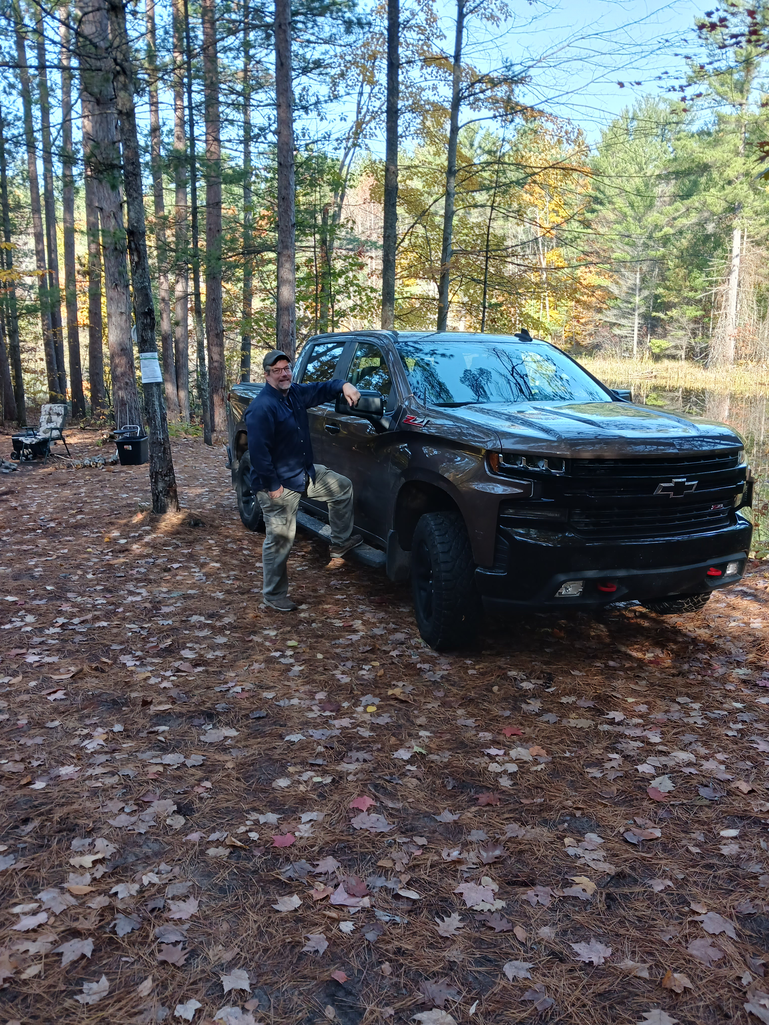Back at camp Jake and Feral wanted to hunt some more and Natch and I decided to replenish the firewood. We drove to one of the clear-cut areas and used his battery powered chainsaw to lop off the ends of small pine trunks sticking out of brush piles. It took maybe fifteen minutes to put a row in the back of his new truck. That’s another story. He traded in his jeep. At the last trout camp Natch talked about a mysterious, impossible to find electrical problem that rendered the jeep undriveable. He replaced the CPU himself, no luck, and took it to the dealer who also could not track down the problem. He finally found a mechanic that could diagnose and do the repair but by then he had no confidence it wouldn’t someday happen again. So he traded the Jeep in on 2019 Chevy truck. Nice truck!
