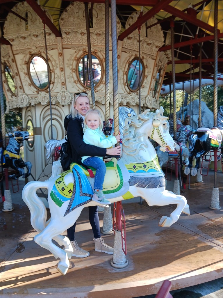 The Railroad fun park was a blast. We all took the train ride around the park which included a stop at a kid-size town with a chapel, a jail, a store and other basically kid-size buildings with fun things inside. On the spot Lil joined in play with the kids from another family running from building to building. She’s so well adjusted and social for a three year old. Good job mom! Lisa and Lil went on other rides including a carousel, a small Ferris wheel, an airplane ride, and finally some whirly thing with a strange name.