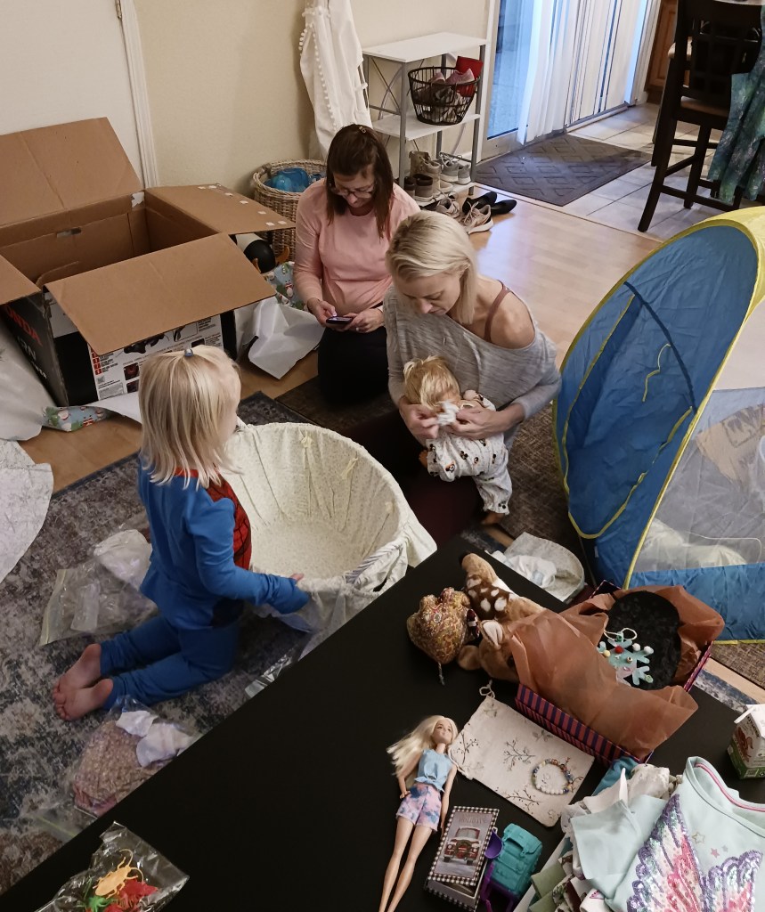 We spent the first few days in Sacramento for a perfect Christmas. Lisa had helped Lil write a letter for Santa and posted it into a tiny mailbox on the TV stand. Santa came while we were there and took it one night. “He’s sneaky!” Lil said. We had gifts around the Christmas tree and lots of playtime with Lil. She received a camping set from her Aunt Sara and “Gunckle” and we spent a lot of time pretend camping with visits from her stuffed animals, cooking meals in the plastic campfire, flicking plastic bugs, the camp set had everything! Jan read Lil some new books including one about a crayons revolt that had them both laughing – belly laughs! Lil received lots of gifts including a baby doll with lots of clothes and a basket that Great Grandma Phillips, my mom, gave Lisa when she was a child. A family heirloom.
