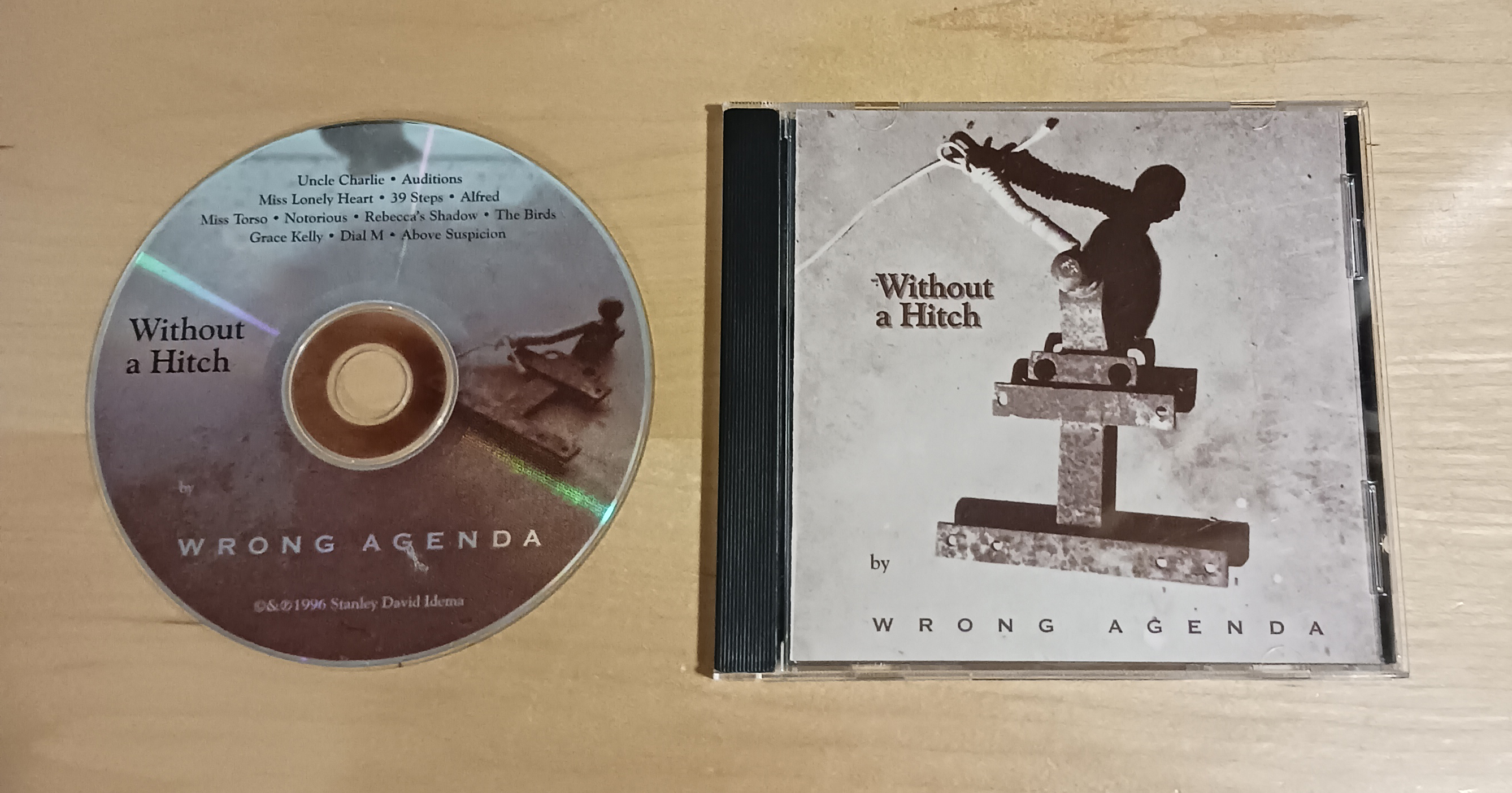Yesterday I found a copy of early cover artwork which I proposed to Scott. But he would have none of it, insisting he was doing his job and that my name should be on the CD. We reached a compromise with the band name Wrong Agenda which actually was prophetic: A strange collaboration at the wrong time in our lives. No way to promote and sell it – people need to hear bands play live, and songs on the air, in order to get sales and recognition. I did send a copy to our local PBS radio station, WGVU, and heard one song, Thirty-Nine Steps, playing on my car radio while waiting in line at a bank. I couldn’t believe it!