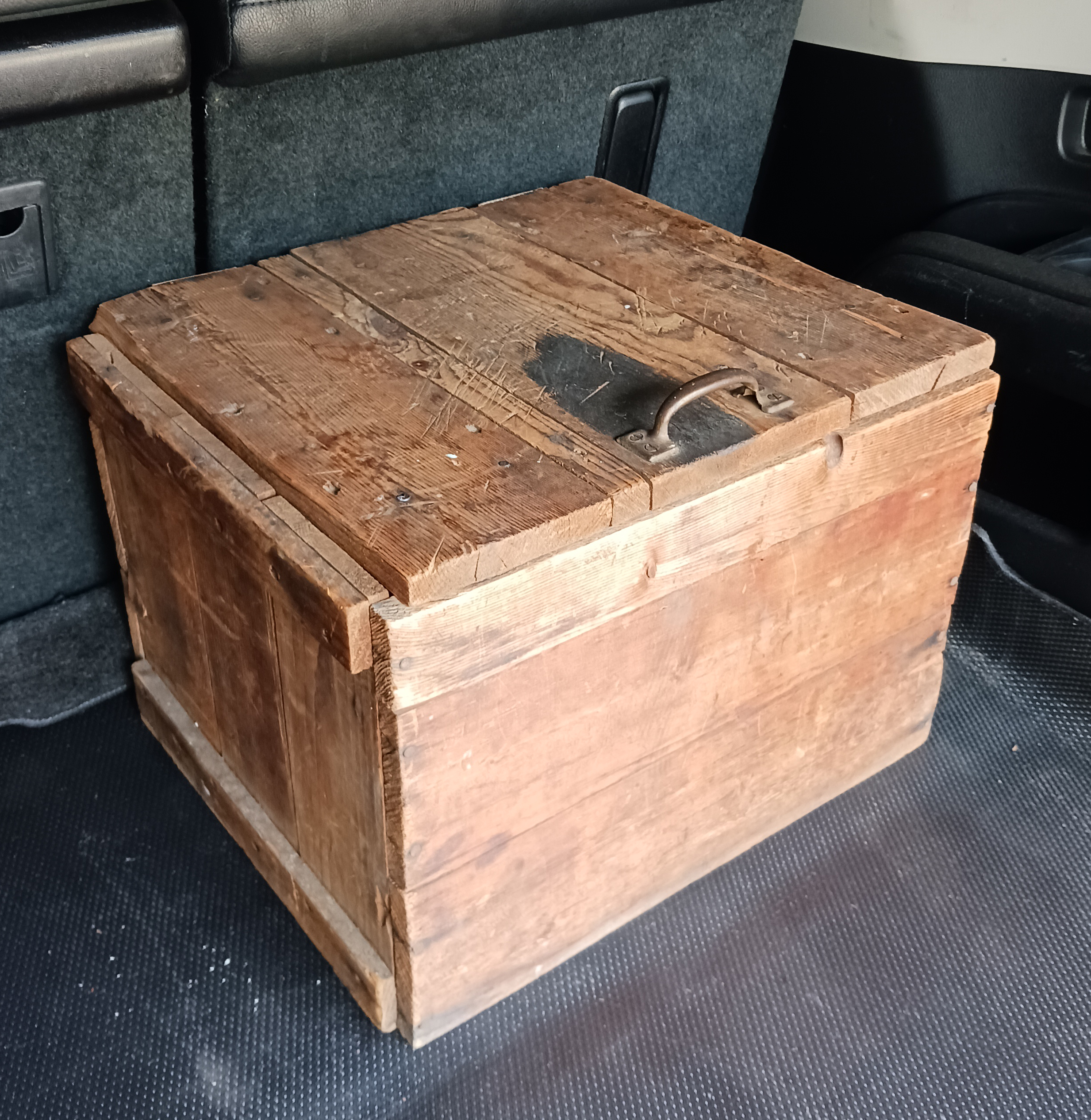 My trout fishing buddies enjoy a challenge. A year or two ago I picked up a crate box with a hinged lid that I use to store all manner of camping and fishing goods. Things like binoculars, fishing line, extra reels, knives, flashlights and small lanterns, walkie-talkies, bug spray, you name it. My buddies all liked my crate box so I proposed a challenge for trout camp this fall: Make a wood “possibles’ box (taken from “possibles bag” mountain men carried into the wilderness). It can have a hinged lid, carry handles if it makes sense, a latch or lock, use imagination to make it practical. It can have a pull out tray or drawers. Bonus points if it looks vintage. Must be macho. Can have wood burning letters, design or illustration. It should have the word possibles or possibles box somewhere on it.