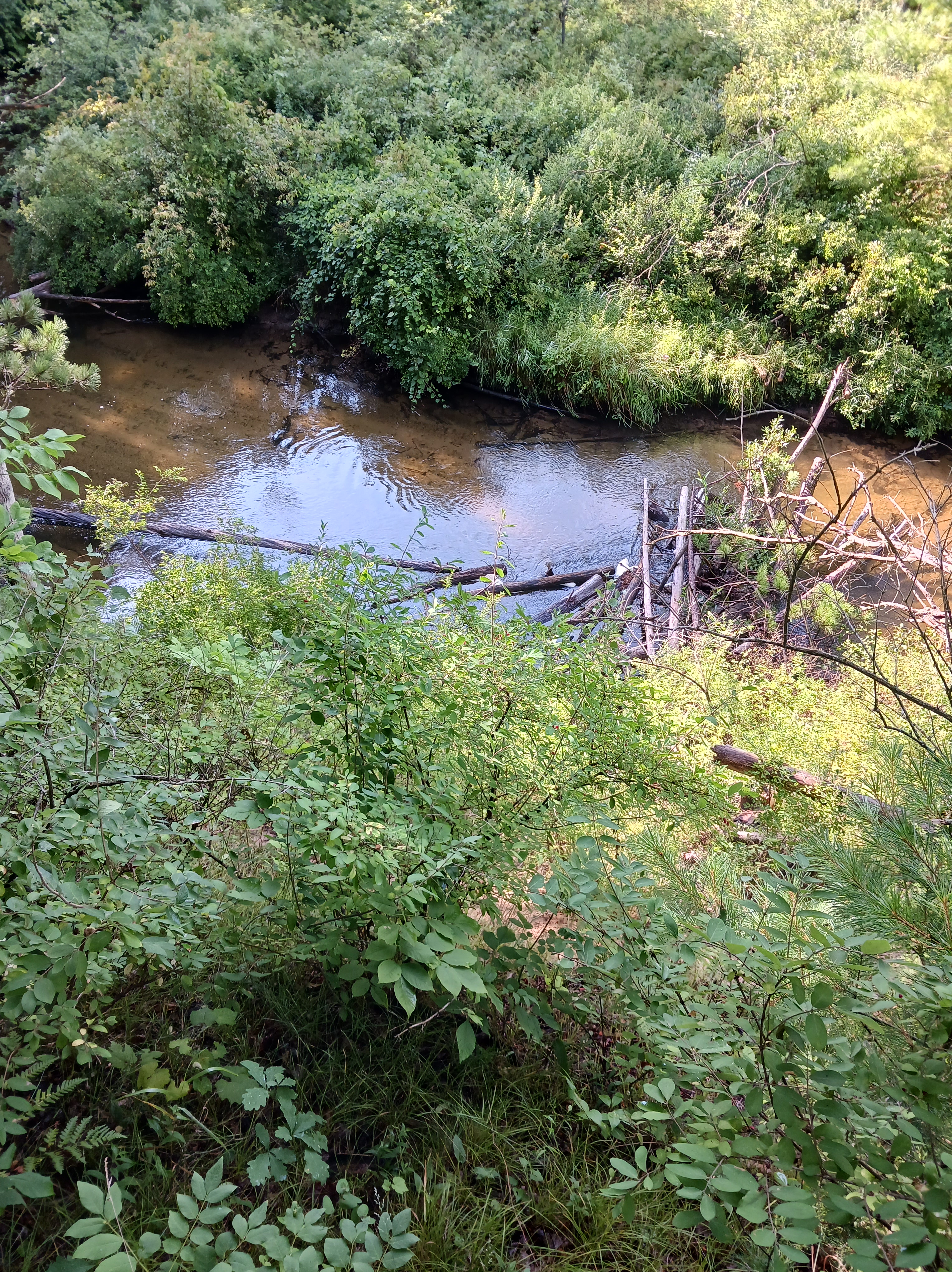 It rained on Sunday but there was no way of telling if my favorite streams 100 miles north saw any of it. Monday I woke at four in the morning and rather than try to go back to sleep I decided to drive up there and take a chance fishing. We’ve had a bit of a drought so I hoped the streams were up a little and carrying a little stain.. but no such luck. I fished the Pine River (Lake County) for about an hour and didn’t see a fish. The Pine was as low as I have ever seen it. I drove south to the Little South (branch of the Pere Marquette) and took a look. It too was very low, maybe the lowest water level I’ve seen on that stream. So a lot of driving, no fish, but did discover my waders leak. Not the best news to cap off a fishless day:)
