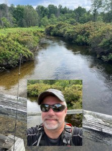 I don’t know how Natch does it. Manager at a large firm. Teenage boys. Four properties to keep up. Air gun collector and re-builder. And he still finds time to steal away to a trout stream. He made the most of the holiday weekend by driving up to the Sturgeon River near Vanderbilt and fishing a stretch in “The Valley.” The water was high and clear and the sun was out. Not such great conditions for fishing. He caught a couple small ones and that could be expected, but coaxing a big one out from under the bank is another matter.