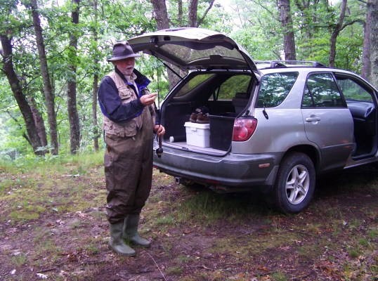 We were interested in fishing but somehow just getting together to hang loose and drink beer was more important. I bought crawlers with that in mind. We are not bait fishermen but it is a recurring theme. An excuse really, not a theme, to set up chairs along the stream, drink a six, and joke about stuff. We launch crawlers into the river with no real expectation of success. If someone catches a trout, and it has happened, it is an incentive to send someone back to camp for more beer.