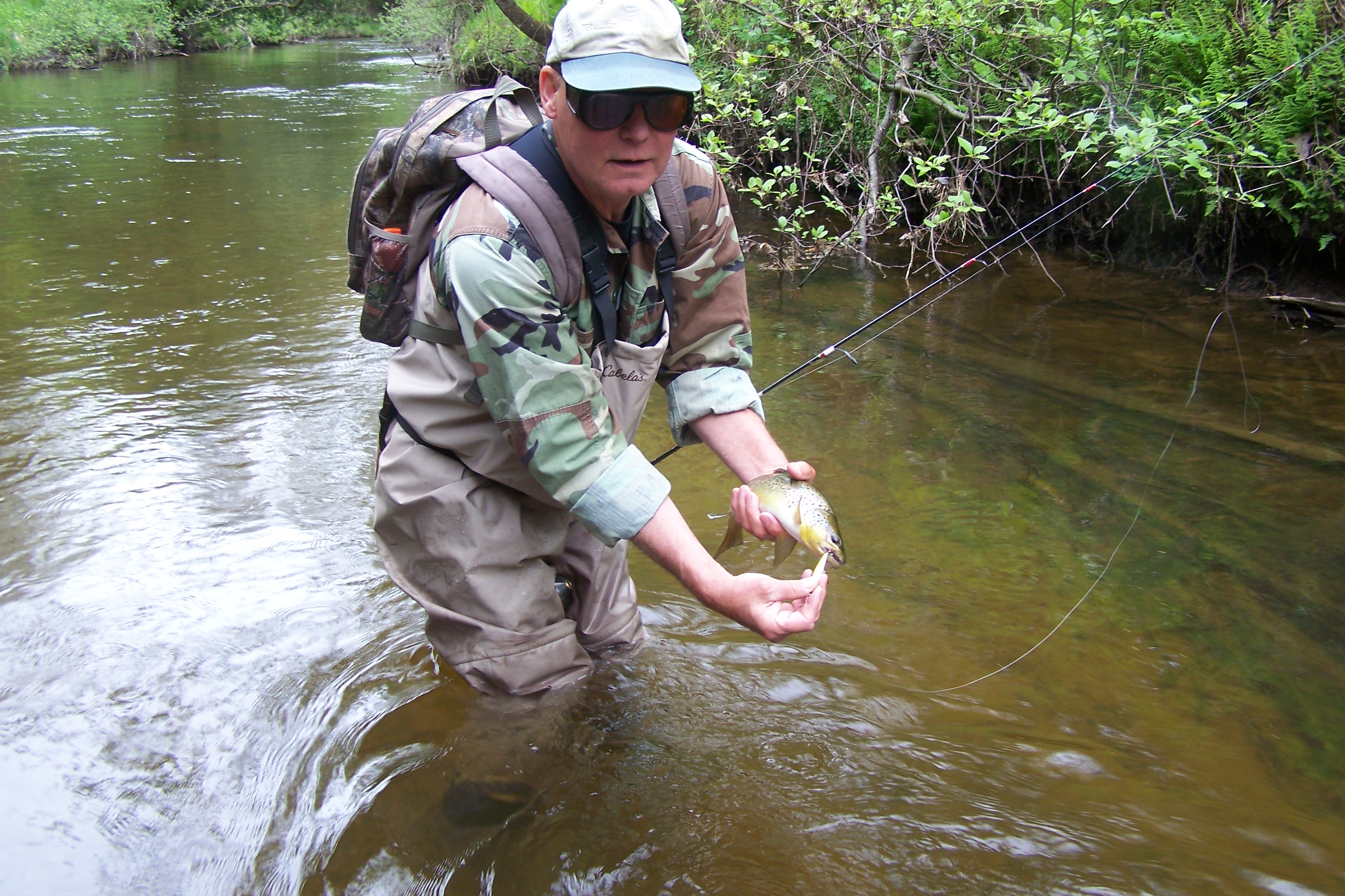 Natch and I were gone so long Feral decided to drive over to Tin Bridge and look for us. We were a couple hundred yards downstream of the bridge when I heard a whistle. Knew right off it was Feral. He joined us and took the lead.