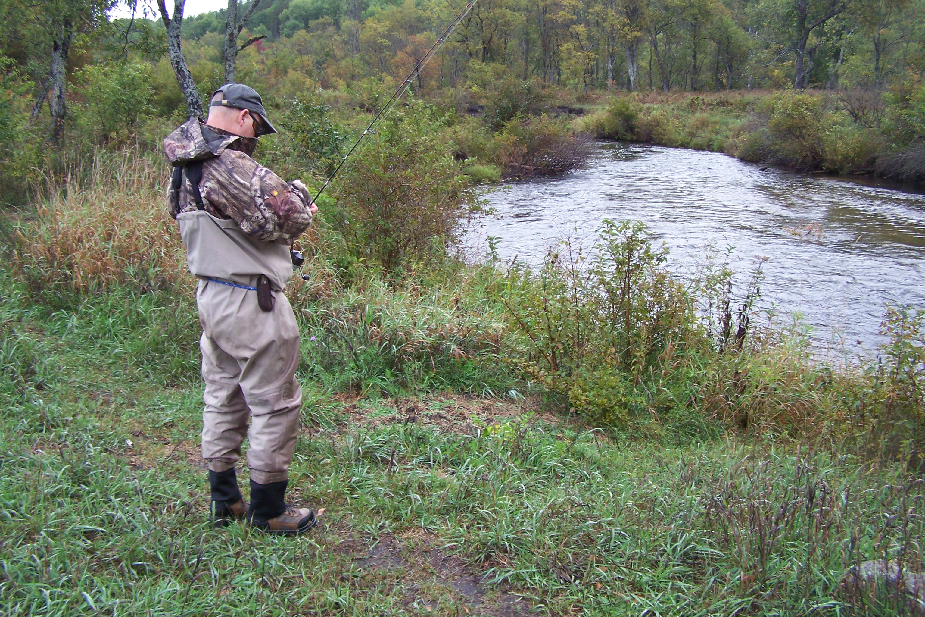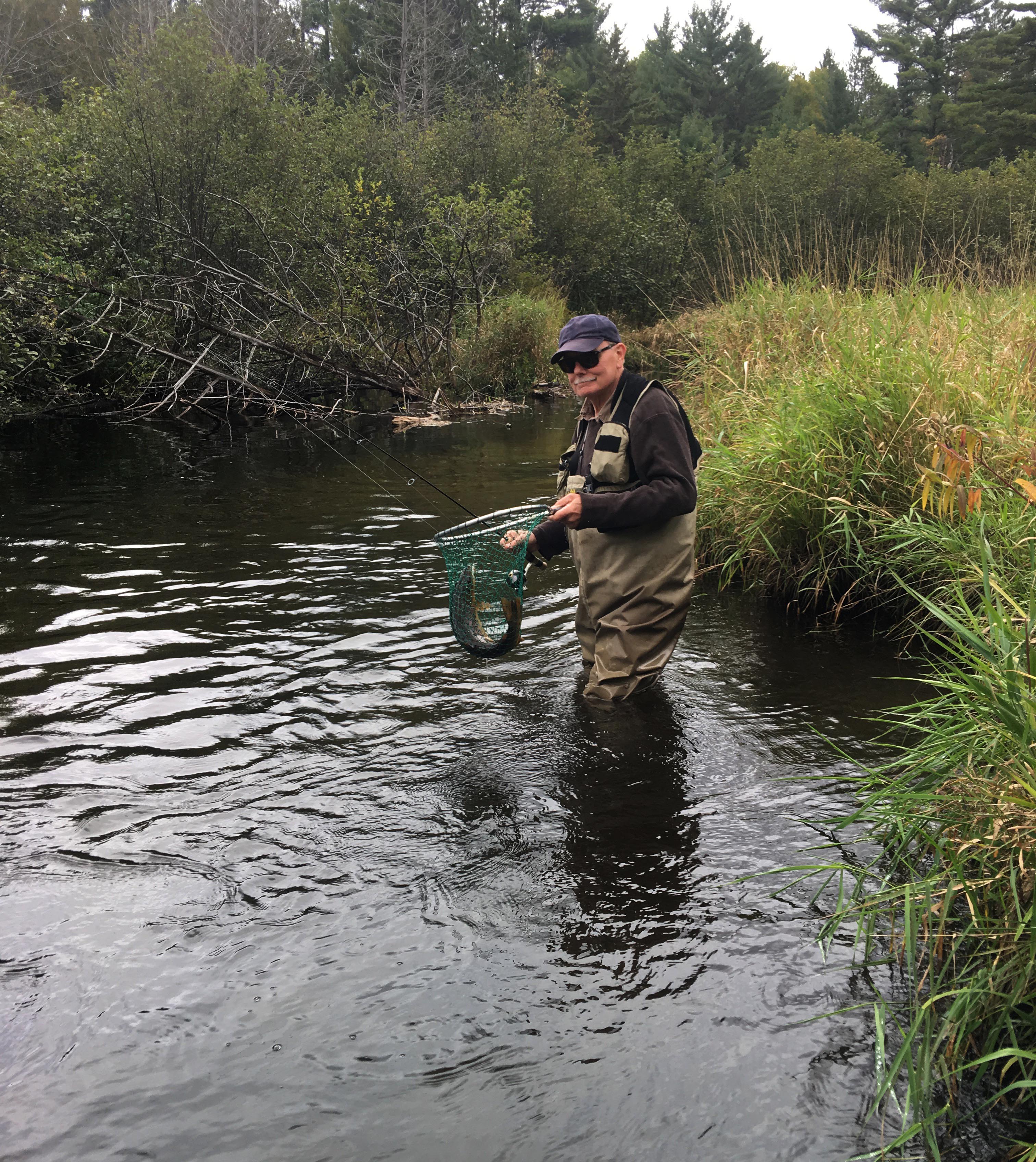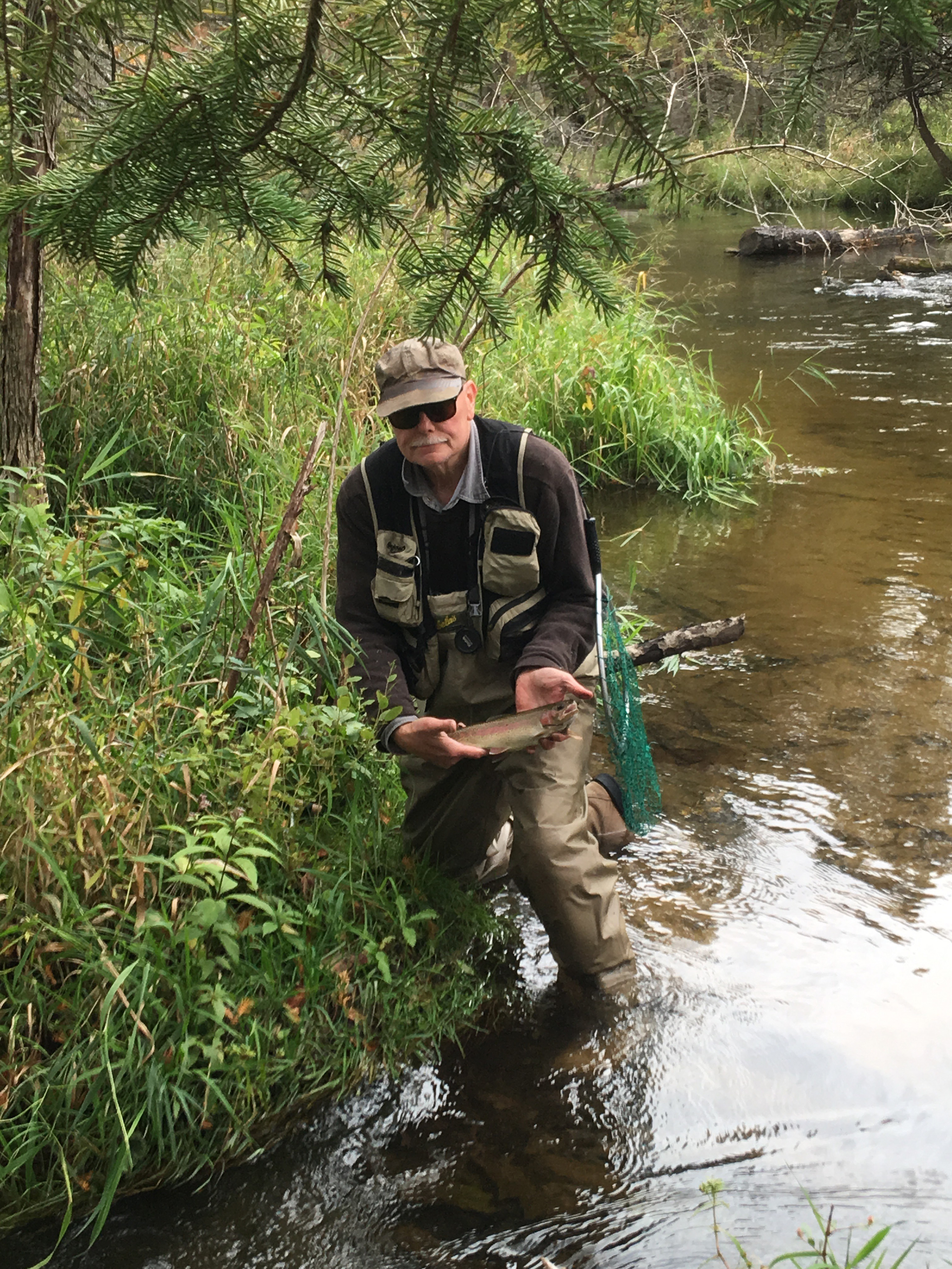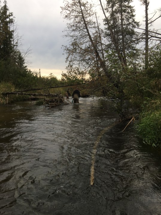 If there’s a story about trout closer 2018 it’s that we needed cold weather to get fish moving up the trout streams and it happened, at least on the Pigeon River. Feral and I fished the Sturgeon twice, saw one brown trout about 18 inches and a couple small ones and that was it. Feral was so discouraged he went bird hunting (partridge) for a good part of the closer. Lots of long walks with a vintage Montgomery Wards 20 gauge pump he picked up somewhere for two and a quarter. He was determined to add a couple birds to our annual trout dinner. Didn’t work, scarce birds, but fortunately Natch and I went over to the Pigeon River where we found some pretty good fishing.
