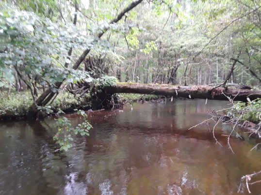 On Sunday Feral said he was bird hunting again so Natch and I decided to fish another stretch together. So far we had been catching plenty of fish and there was one more section of the Pigeon we were thinking about, with some dread. Downstream from Tin Bridge. There’s no fisherman’s path along the river. You bust your way through saplings and pines and tall grass that hides stumps designed to trip you up or put holes in your waders. The grass is waist deep in some places and woven so tight you tear grass when walking through it. By the time we made it downstream to a bend that looked promising we had to drink a bottle of water and eat a nut trail mix snack just to see straight.