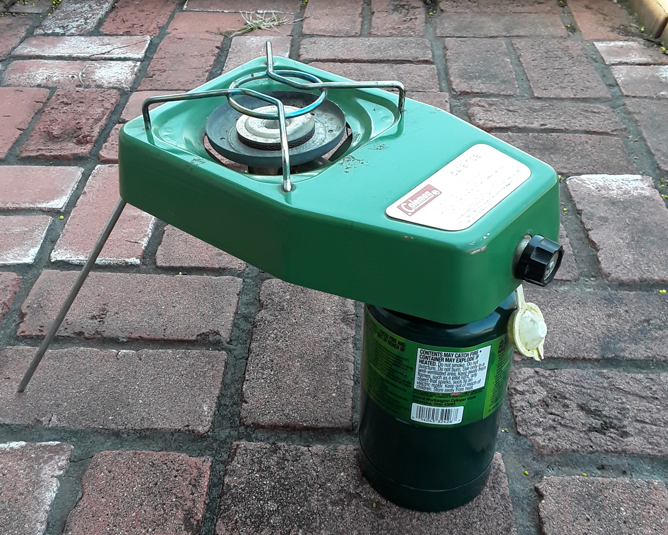 A vintage Coleman single burner propane stove. This caught me by surprise because I wasn’t aware of Coleman using this design whereby the propane tank provides a third leg to the base. I have one of these by another maker which you may have seen in earlier posts. It is a very practical design- just pull out the legs, attach the propane, set it on the table and light it. I found one of these early Coleman’s for sale online which they claim is circa 1955 but I would be surprised if it were that old because I’m not sure the propane tanks have been around that long! Anyway – I paid six dollars.
