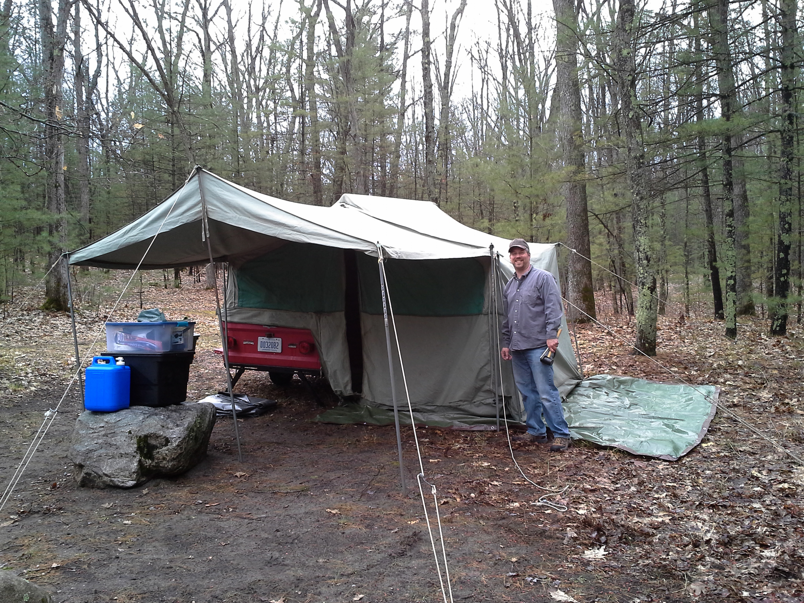 The Fishing was amazing. I set up camp about 3:30 PM Thursday and headed for the river. I caught three nice browns, all 15 in or better, and saw others. Stream was low and clear, not ideal, but the fish were hungry. Basically work any deep water with lures. I took photos for proof but any trout fisherman in Michigan knows what a nice brown trout looks like so I’ll forgo posting the photos. Update – might as well show the trout…